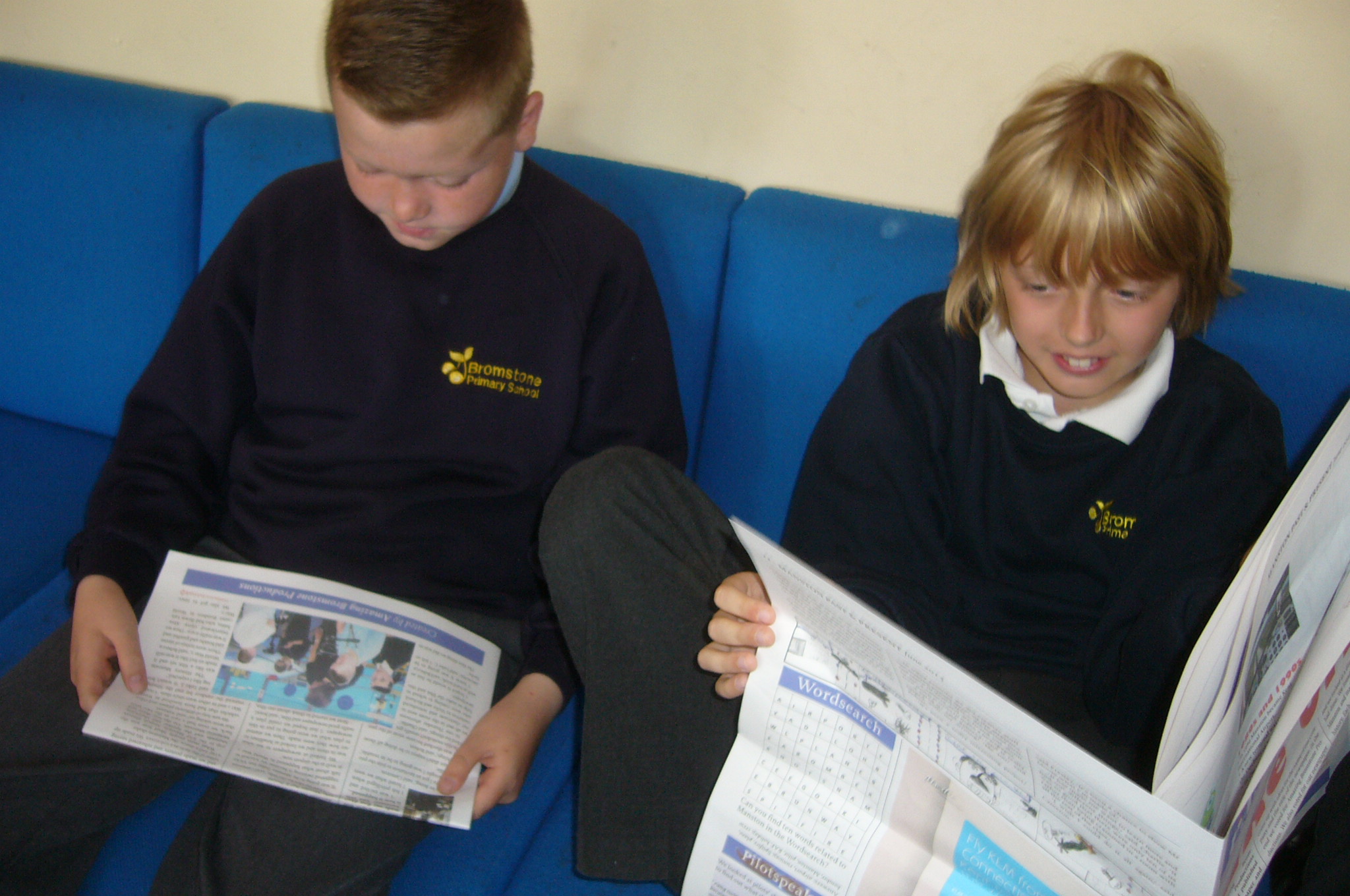 P1100520Pupils from Bromstone Primary School in Broadstairs have just published their first newspaper. The title is Manston Past & Present and the paper contains an interview with staff from Manston Airport about their new link up with Dutch airline KLM, an interview with WW2 bomber pilot Gerry Abrahams, interviews with pupils about their view on WW2, interviews with parents about their experiences of airports, stories about holiday dreams and disasters and much more.